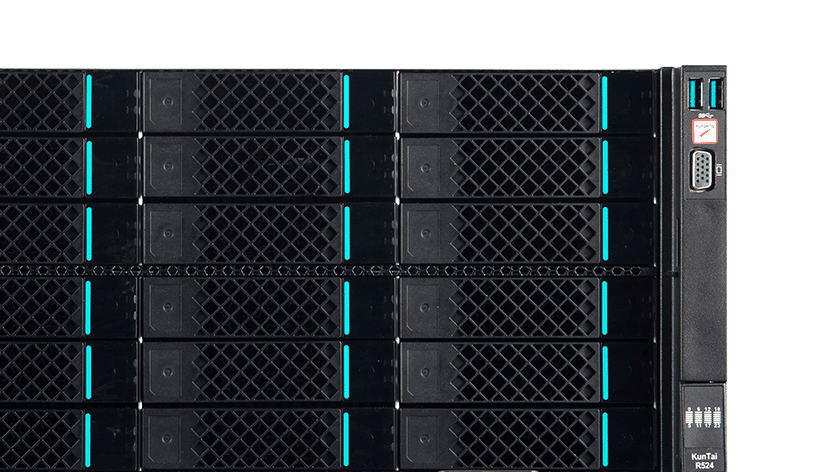 KunTai R524 存储型服务器是浩瀚钱包数码基于鲲鹏处理器推出的新一代 ARM数据中心服务器。。。。主要面向存储业务,,,具有海量存储、、、、高性能、、、、低功耗以及易扩展的特点,,,适合为大数据分析、、、软件定义存 储等应用场景的工作负载进行髙效加速。。。
